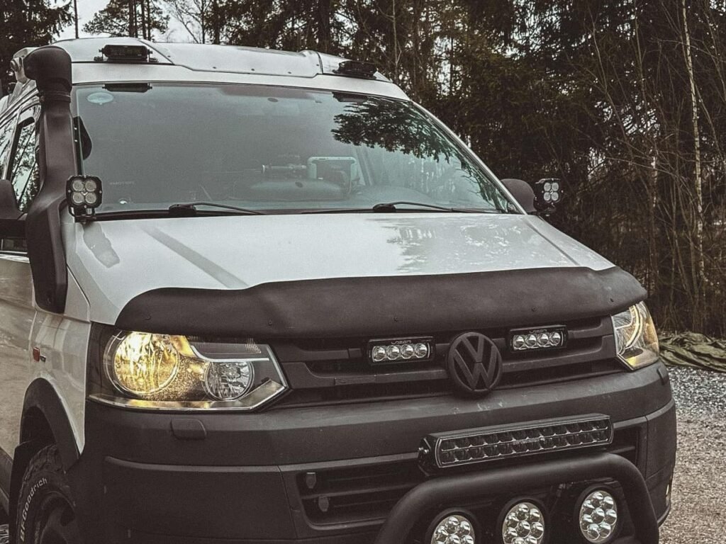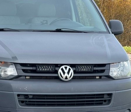 Syksyn pimeässä ajellessa mikään ei ole niin mukavaa kun kunnon lisävalot. Semmoiset tarvittiin Transporterin keulaan, mutta perinteinen rekisterikilven alle tuleva teline ei ollut vaihtoehto.