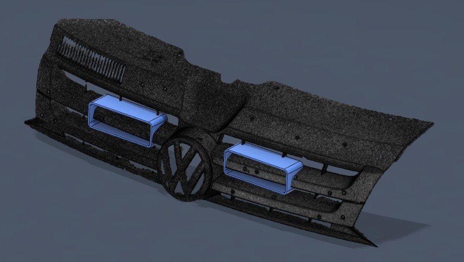 Homma aloitettiin 3d-skannaamalla maski jotta osista saadaan mallinnettua istuvat. Skannerin mittatarkkuus on 0.1mm joten skannattuksiin mallinnetut osat yleensä istuvat erittäin hyvin.
