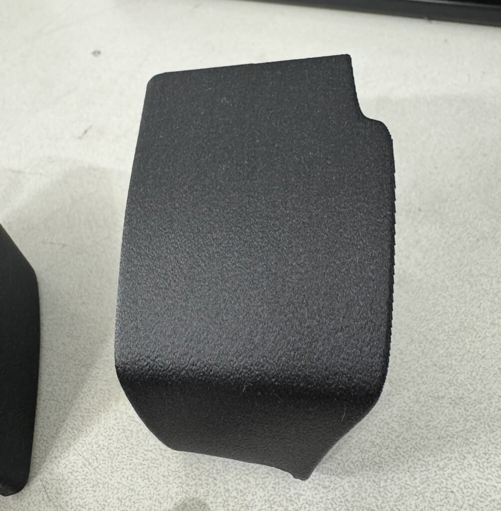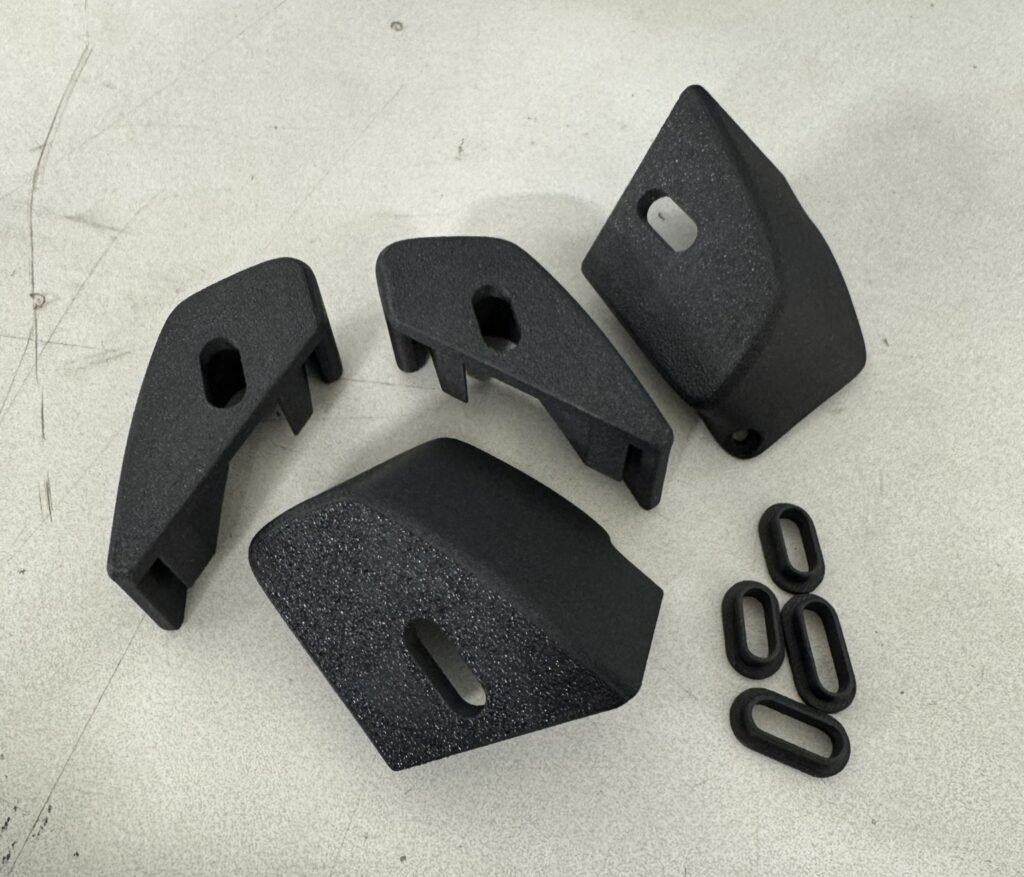 Kun muotoilu saatiin valmiiksi, osat tulostettiin ASA-GF materiaalilla ja ne istuivat tällä kertaa heti paikalleen ilman muokkauksen tarvetta. Lasikuidulla vahvistetun materiaalin pinta on myös suoraan tulostimesta todella siisti, joten mitään pintakäsittelyä näihin ei tarvita.